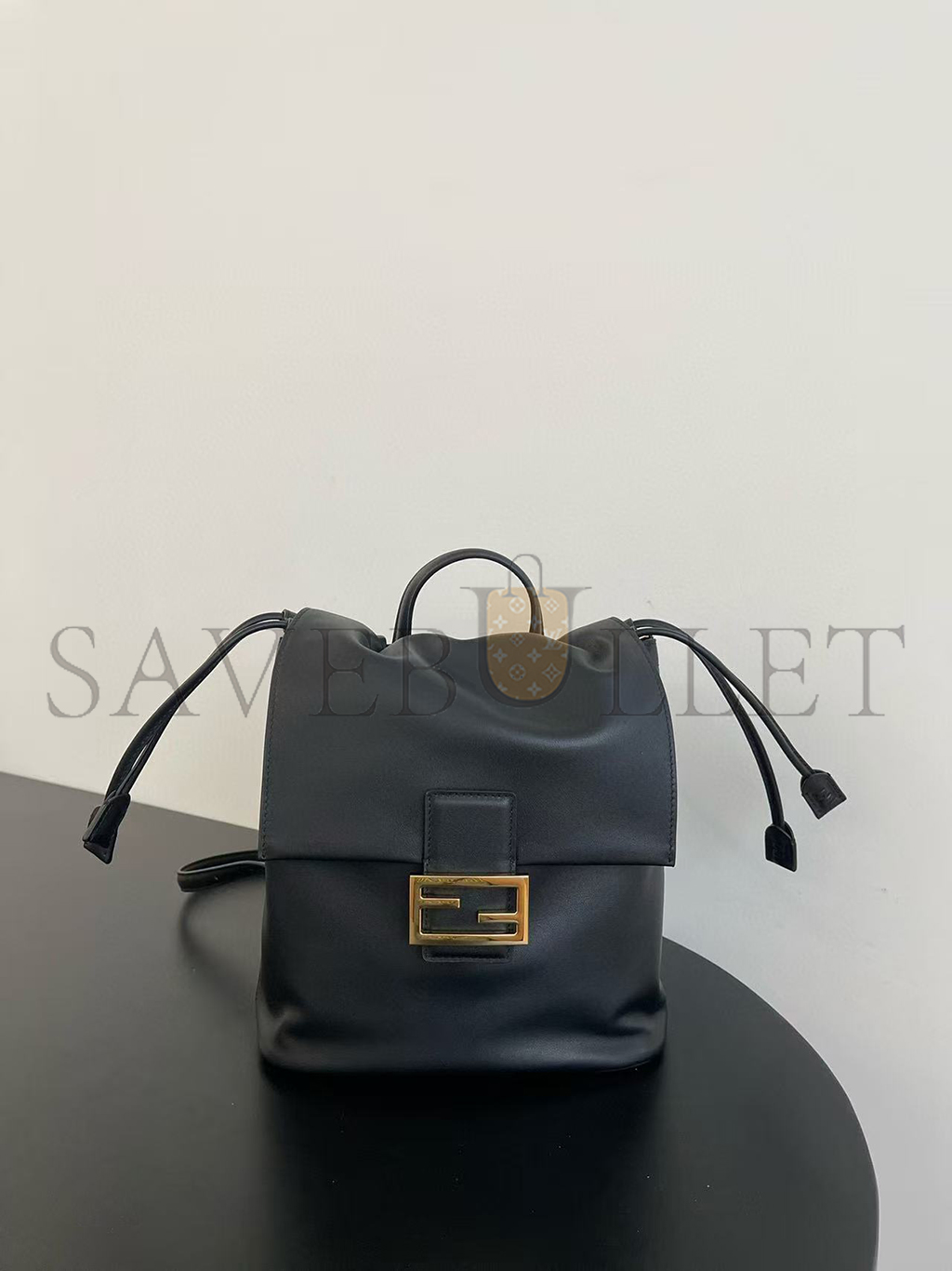 FENDI BLACK LEATHER BACKPACK 8BZ057AYJ1F0KUR (26*23*12cm)